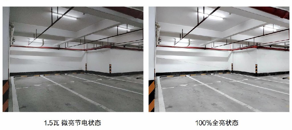 ▶ 行车道采用(3-18w)智能感应灯管,有车与人通过时提供正常照明(18w),没车与人通过时提供基本安全照明(3w),如此循环往复;